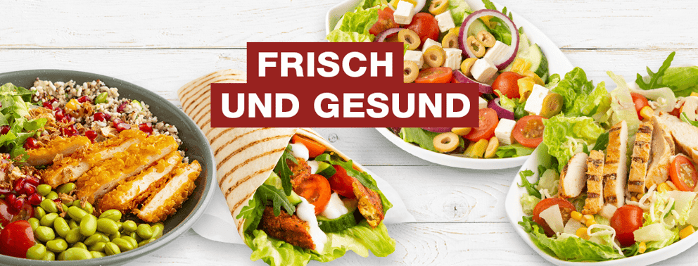 Weizentortilla frisch gefüllt mit würzigem Chicken Kebab, cremig frischem Tzaziki, knackigem Salat, Rucola, roten Zwiebeln, Salatgurke & frischen Kirschtomaten
